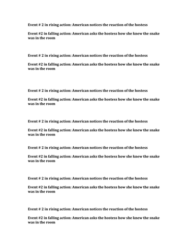 Short Story The Dinner Party / The Dinner Party Short 2009 Imdb : A colonial official and his wife are giving a large dinner party.. In india, a colonial officer and his wife host a dinner party and invite army officers and government attaches along with their wives, and an american naturalist. These materials do not require any prep and can be used as an. Retold by mona gardner pov= 3rd person climax the snake leaves the room and everyone screams. The script is an adaptation of mona gardner's the dinner party. She has clearly introduced the story and included all the major details and characters very concisely.